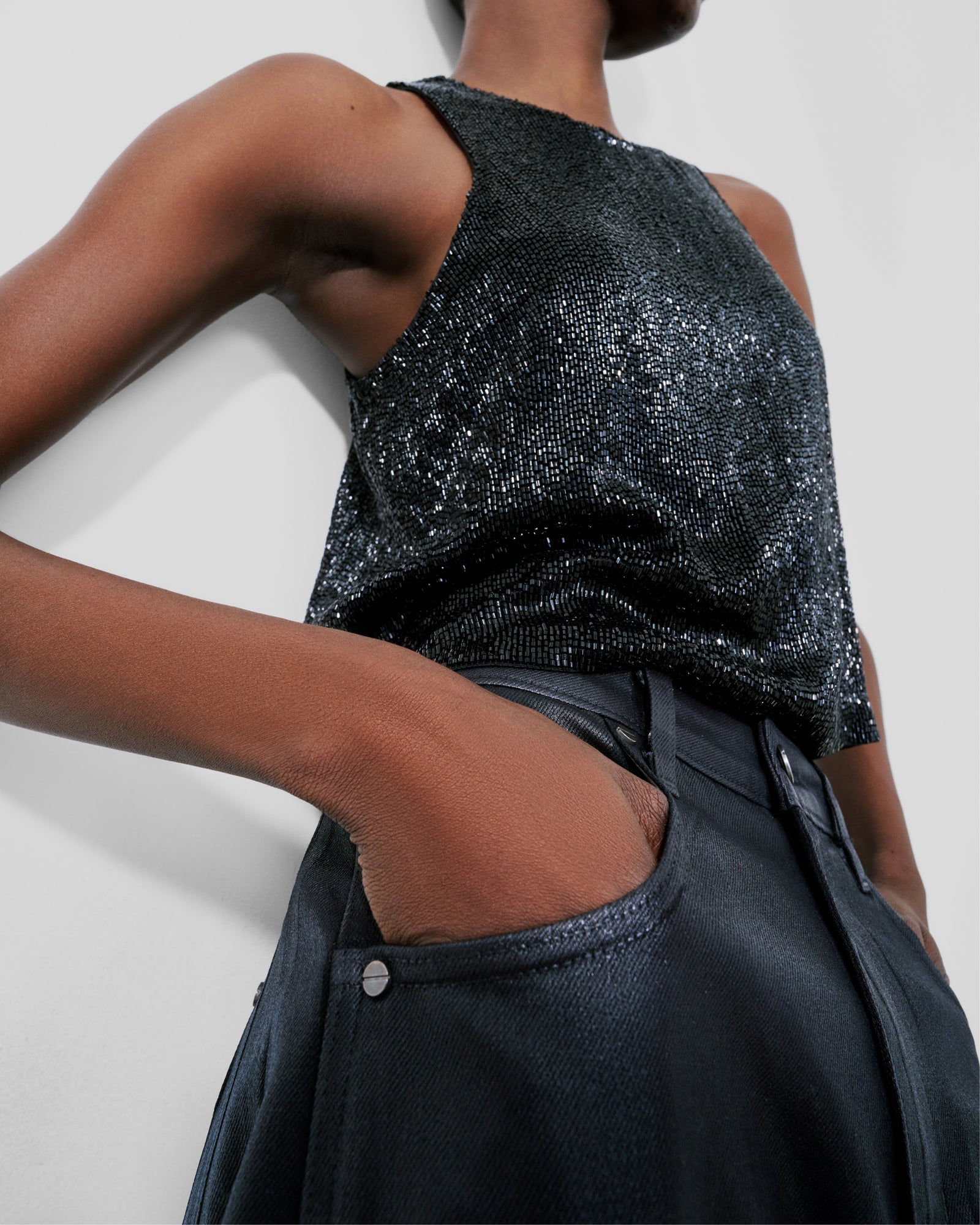Short Muscle Tank in Mini Sequin Netting