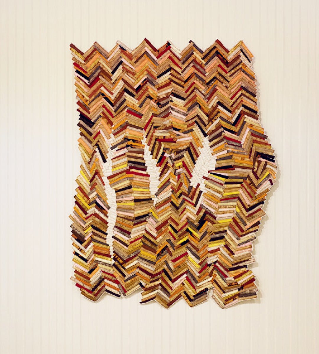 Bastienne uses soft, flexible fabrics - sewn, pleated, and stretched over canvas to create monochromatic, grid-based works that function like a second skin or garment.
